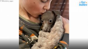 WATCH: Kid comforts dog after bath This parent captured footage of their child holding and comforting their Italian greyhound with sweet words after its bath.