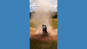 WATCH: Dust devil strikes at baseball game A dust devil hit during a children’s baseball game in Jacksonville, Florida.