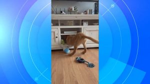 WATCH: ICYMI: Puppy outgrows hangout spot Bruce a Golden Retriever puppy is still trying to fit into his favorite spot, under the TV, with everything...
