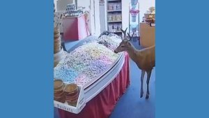 WATCH: Deer with a sweet tooth visits candy store Security camera footage captured the moment a deer decided to visit a neighborhood candy store in Ocean Shores, Washington.