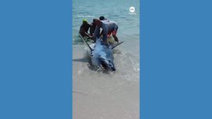WATCH: Beachgoers help stranded shark back into water at Florida beach Several beachgoers worked together to help a stranded shark get back into the swim of things.