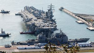 US aircraft carrier arrives in South Korea A U.S. nuclear-powered aircraft carrier has arrived in South Korea in a demonstration of strength against North Korea