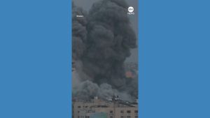 WATCH: Gaza building collapses in Israeli airstrike after Hamas attacks Video shows the moment a high-rise building in Gaza was struck by Israeli warplanes, spewing plumes of black smoke...
