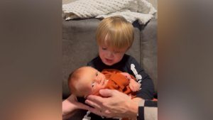 WATCH: Toddler knows the perfect lullaby to sing to his baby brother: ‘We Will Rock You’ Silas really took “rock the baby” seriously!