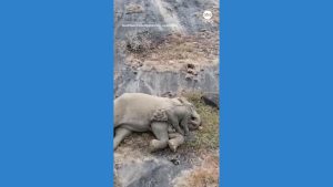 WATCH: Mother elephant cuddles with calf days after reunion Footage shows the moment a mother elephant cuddled up to her calf days after it was returned to her...