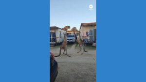 WATCH: Kangaroos brawl at caravan park in Australia Footage captured two kangaroos going head-to-head in a fight in New South Wales, Australia, roo-thlessly trading blows in front...
