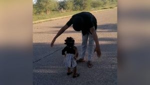 WATCH: 2-year-old gives her dad a dancing lesson Mom and dad were both surprised at how much of a natural she is.