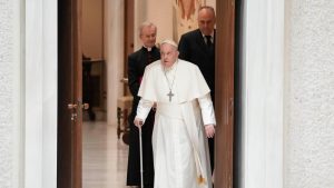 Pope appears in better health, praises Israeli, Arab dads who lost kids in conflict Pope Francis appears in better health, walking into the Vatican audience hall on his own with a cane for...